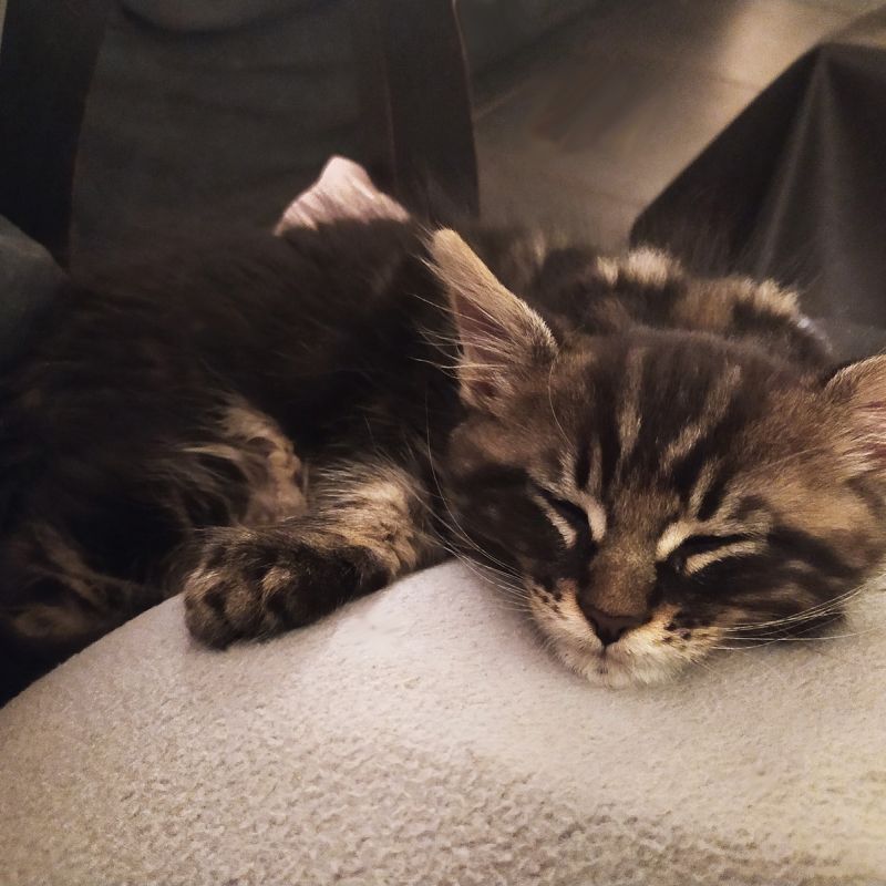 Le passe temps préféré de Trafalgar est de jouer avec tous les chatons de la maison. Il n’hésite pas à réveiller et embêter ses frères et sa sœur qui se reposent pour démarrer une partie de jeu. Mais c’est aussi un grand tendre.